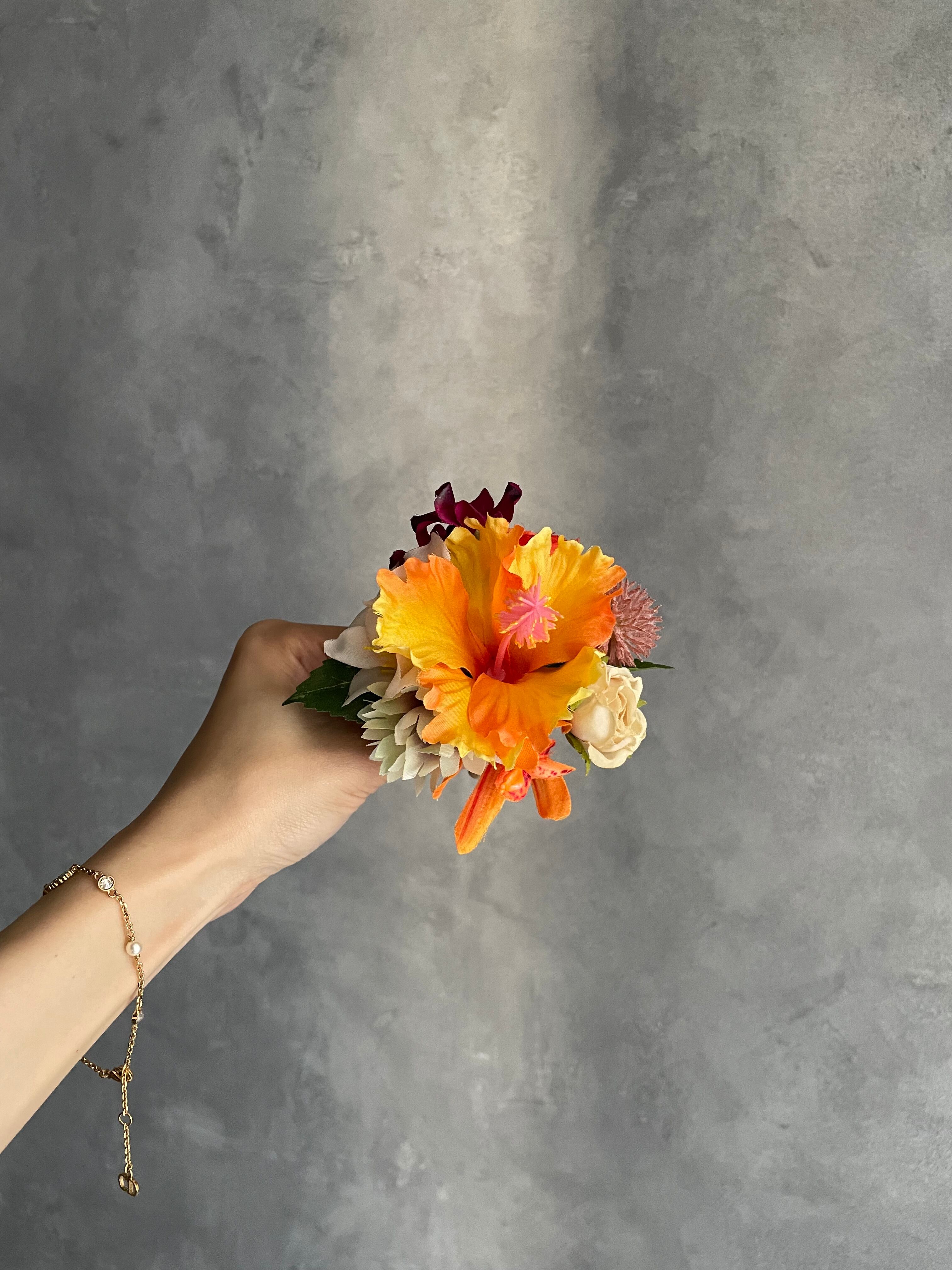南国のお花をたくさん取り入れ、カラフルでトロピカルなブーケに仕上げました 明るくトロピカルな色合いが夏らしさ、リゾート感を演出し常夏をイメージさせる心華やぐ一束です️