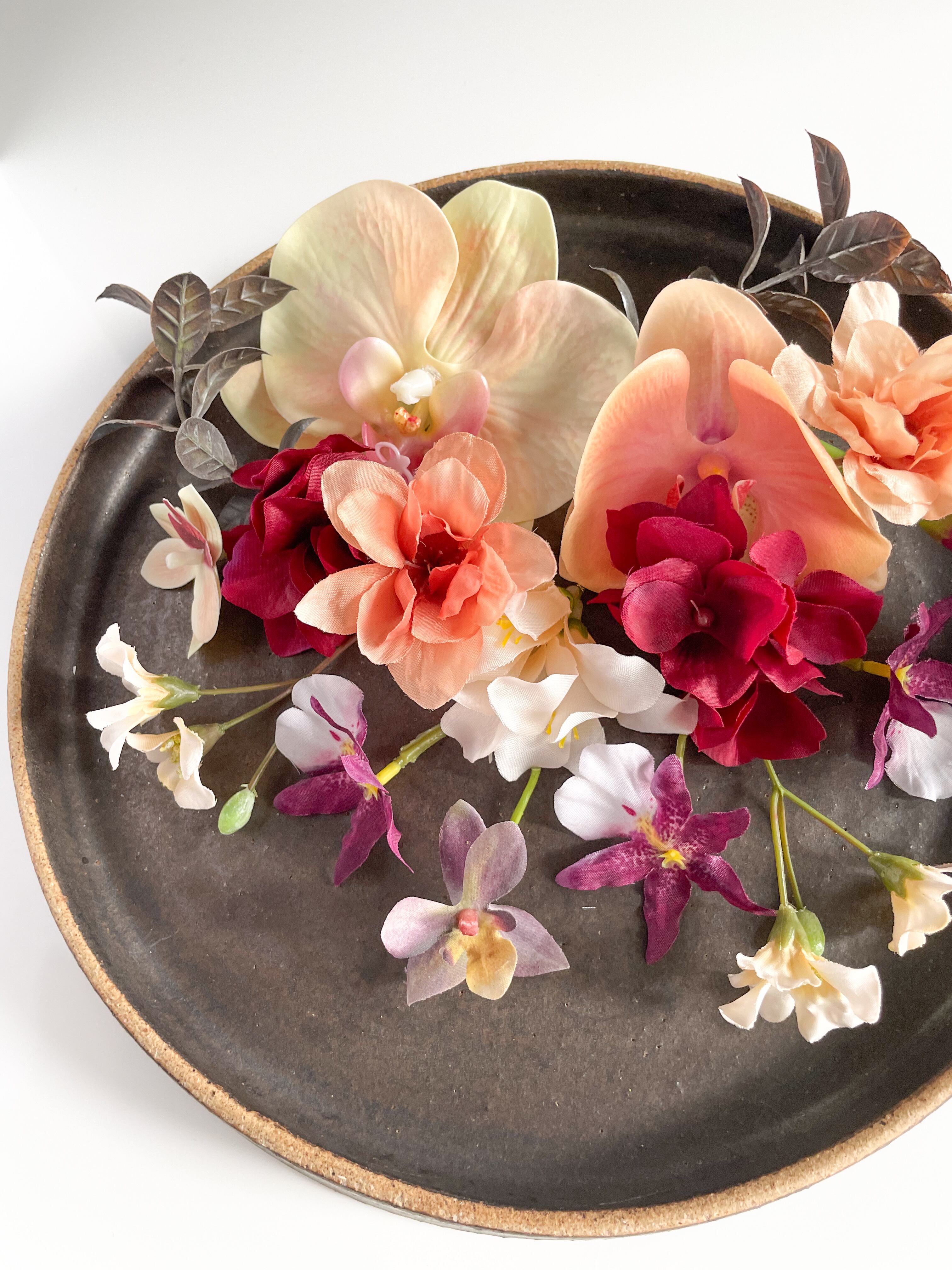 赤やオレンジ、パープル、黒ドレスなどはもちろん、赤などの和装にも素敵に合わせていただけます。